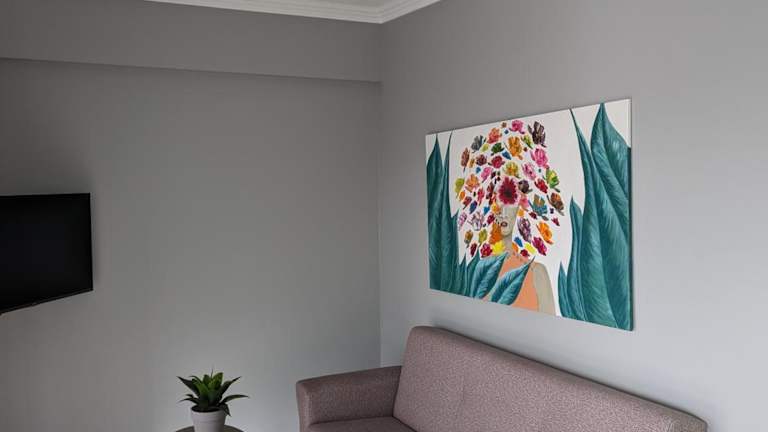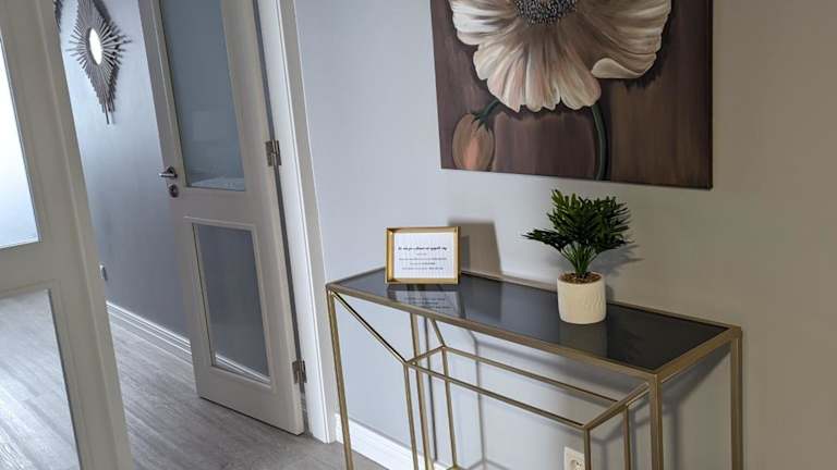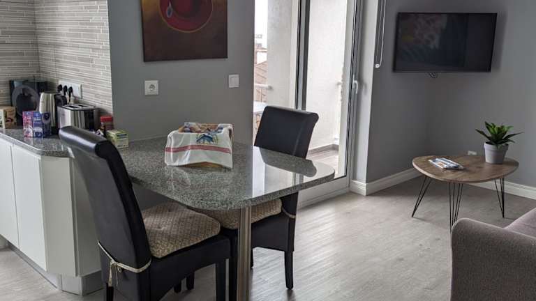 Die Ferienwohnung verfügt über ein Schlafzimmer, ein Wohnzimmer und eine voll ausgestattete Küche. Zur Ausstattung gehören ein Kühlschrank und eine Kaffeemaschine. Das Badezimmer ist mit einer Dusche und einem Haartrockner ausgestattet. Handtücher und Bettwäsche sind ebenfalls vorhanden.