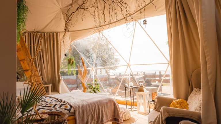 Beautiful located dome ist eine Unterkunft, die durch eine Terrasse und eine Klimaanlage besticht. Die Lodge bietet zudem einen Garten für Erholung und Entspannung sowie kostenlose Privatparkplätze.