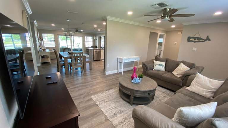 Das Waterfront Hernando Beach House liegt in Hernando Beach, Florida. In der Nähe finden Sie den Homosassa Springs Wildlife State Park, den Weeki Wachee Springs und den Werner-Boyce Salt Springs State Park. Der internationale Flughafen Tampa ist ebenfalls nicht weit entfernt. Die Lage des Ferienhauses ermöglicht es Ihnen, die natürliche Schönheit der Umgebung zu erkunden und verschiedene Outdoor-Aktivitäten wie Angeln und Kajakfahren zu genießen.