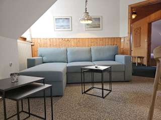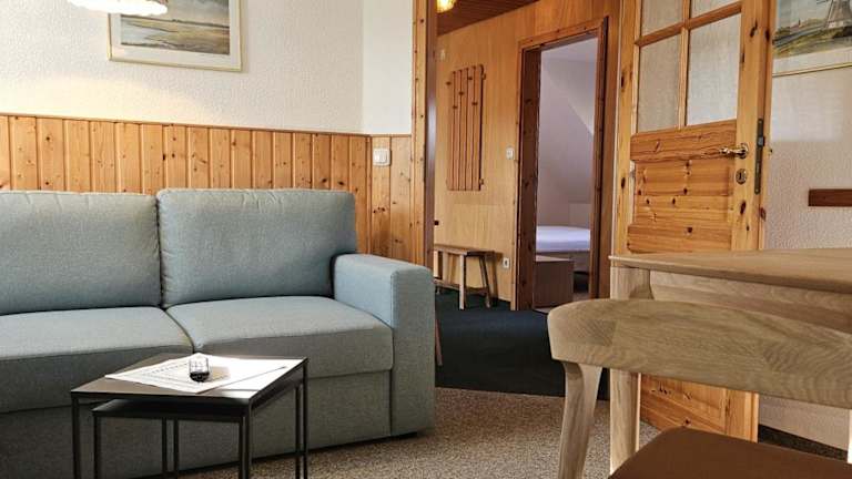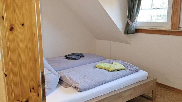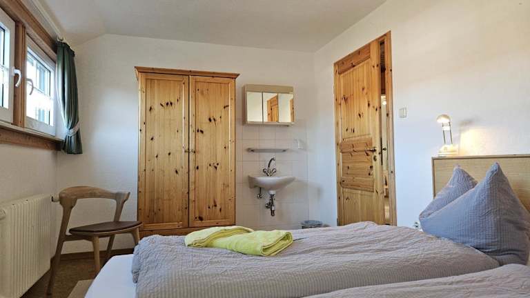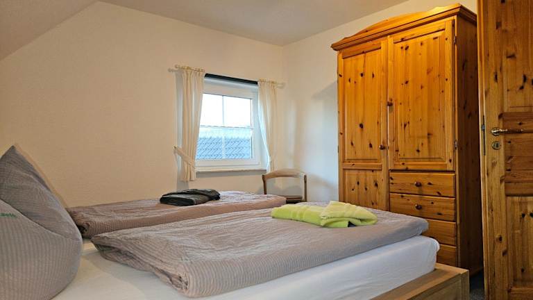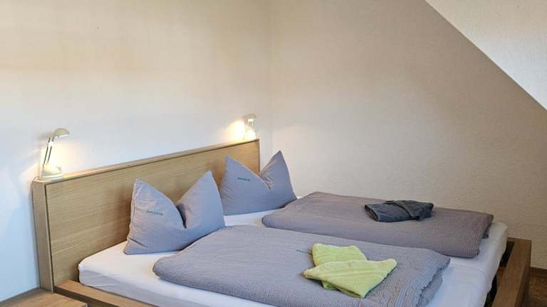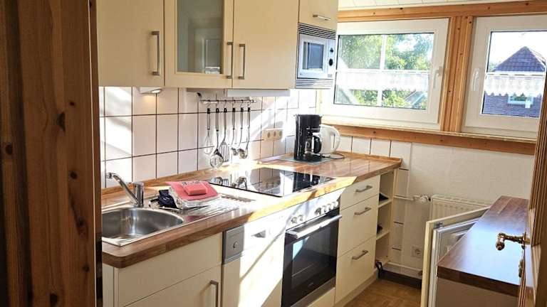 Die Ferienwohnung verfügt über zwei Schlafzimmer sowie ein voll ausgestattete Küche, die mit einem Kühlschrank und einem Geschirrspüler ausgestattet ist. Ein Badezimmer mit Dusche und Haartrockner steht ebenfalls zur Verfügung. Handtücher und Bettwäsche werden bereitgestellt.