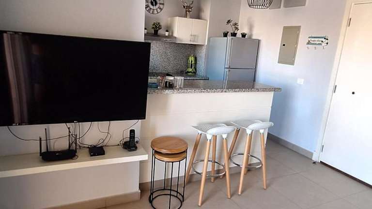 Die Ferienwohnung umfasst ein Schlafzimmer, ein Wohnzimmer sowie eine gut ausgestattete Küche. Zur Ausstattung gehört ein Satelliten-Flachbild-TV. Das Badezimmer ist mit einem Bidet und einer Dusche ausgestattet.