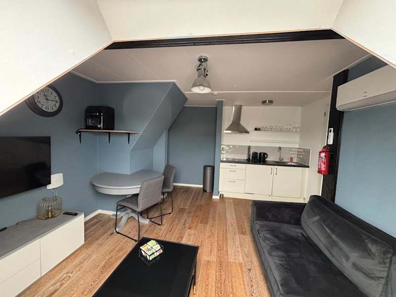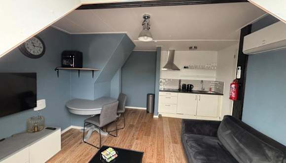 Die Unterkunft besteht aus einem Schlafzimmer und ist zusätzlich mit einer voll ausgestatteten Küche ausgestattet, die einen Kühlschrank und einen Ofen umfasst. Ein Flachbild-TV sowie ein Sitzbereich sind vorhanden. Das Badezimmer ist mit einer Dusche ausgestattet.