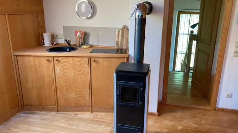 Die Ferienwohnung umfasst ein Schlafzimmer und eine Küchenzeile, die mit einem Kühlschrank, einer Herdplatte und einem Wasserkocher ausgestattet ist. Zur Ausstattung gehören auch Handtücher und Bettwäsche.