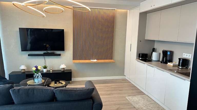 Die Ferienwohnung verfügt über ein Schlafzimmer und ein Wohnzimmer. Die Ausstattung umfasst eine voll ausgestattete Küche mit Kühlschrank und Kaffeemaschine, ein Badezimmer mit Dusche und kostenlosen Pflegeprodukten sowie Klimaanlage. WLAN ist in allen Bereichen verfügbar.