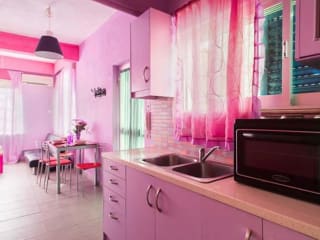 Es gibt eine voll ausgestattete Küche in jeder Wohneinheit, die unter anderem einen Kühlschrank, eine Herdplatte, eine Kaffeemaschine und einen Wasserkocher umfasst.
