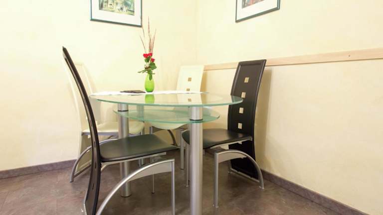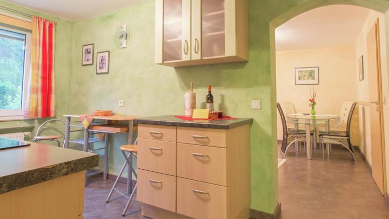 Die Wohnung verfügt über ein Schlafzimmer, ein Wohnzimmer mit einem TV, eine gut ausgestattete Küche, die unter anderem mit einem Geschirrspüler und einem Ofen ausgestattet ist, sowie ein Badezimmer mit Dusche. Handtücher und Bettwäsche werden bereitgestellt.