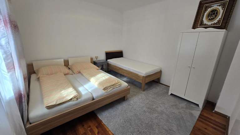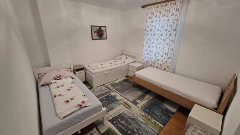 Die Ferienwohnung bietet drei Schlafzimmer, ein Wohnzimmer sowie eine voll ausgestattete Küche mit Kühlschrank und Wasserkocher. Das Badezimmer ist mit einer Dusche und kostenlosen Pflegeprodukten ausgestattet. Handtücher und Bettwäsche werden bereitgestellt.