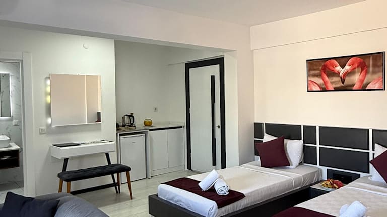 Das weekendbodrum Hotel in Gümbet bietet Ihnen eine komfortable Unterkunft mit einem Außenpool und einer Terrasse. Das Hotel liegt nur 1,1 km vom Strand entfernt und verfügt über eine 24-Stunden-Rezeption. Genießen Sie kostenloses WLAN in allen Bereichen der Unterkunft. Die Zimmer sind modern ausgestattet und verfügen über ein eigenes Bad, Klimaanlage, einen Flachbild-TV und einen Kühlschrank. Einige Zimmer verfügen auch über eine Küche mit einem Kochfeld. In der Nähe des Hotels finden Sie beliebte Sehenswürdigkeiten wie den Strand Bardakci Bay, die Windmühlen von Bodrum und das Myndus-Tor. Der Flughafen Bodrum-Milas ist nur 43 km entfernt.