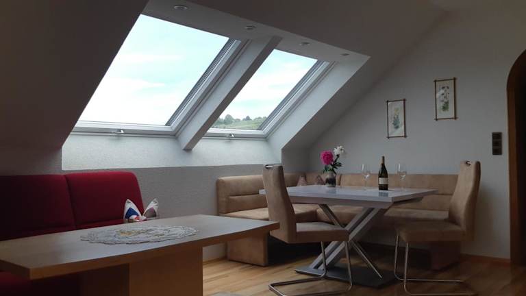 Das Hotel Wein- und Weitblick bietet keine Verpflegung vor Ort. Die Gäste können jedoch die komplett ausgestattete Küche nutzen, um ihre eigenen Mahlzeiten zuzubereiten. In der Umgebung gibt es auch Restaurants und Cafés, in denen Sie lokale Spezialitäten genießen können.