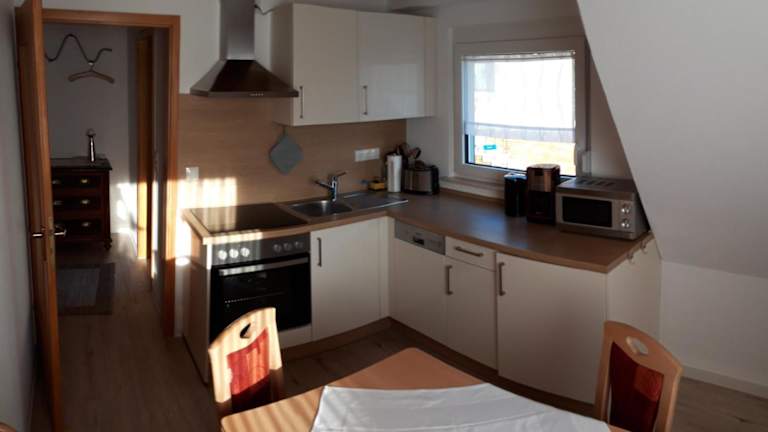 Die Wohnung verfügt über 2 Schlafzimmer und ein Badezimmer. Zur Ausstattung gehören Bettwäsche, Handtücher, ein Flachbild-TV mit Satellitenkanälen, ein Essbereich sowie eine voll ausgestattete Küche.