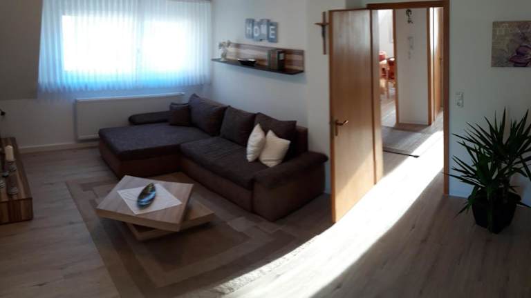 Die Unterkunft befindet sich in Ramsthal, in der Region Bayern, mit Blick auf die umliegenden Berge und einem Garten.