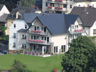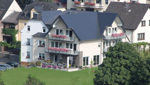 Herzlich willkommen! Direkt an der Mosel gelegen und umrahmt von romantischen Weinhängen haben Sie bei uns ein wahres Juwel für Ihre schönsten Tage im Jahr gefunden. Wir freuen uns, Sie bei uns begrüßen zu dürfen, und heißen Sie herzlich in unserer Weinbergs Loge in Ernst willkommen! Einfach mal entspannen, die Seele baumeln lassen und den Tag in vollen Zügen genießen: Hier im Moselland ist das ein Leichtes. Bei uns verbringen Sie erholsame Nächte in stilvollen Zimmern und genießen beim morgendlichen Kaffee den herrlichen Blick in die Natur – Alltagsstress und Hektik rücken dabei schnell in weite Ferne. Auch die zahlreichen gemütlichen Ecken in unserem Garten oder der Gesellschaftsraum mit TV, bieten sich zum Verweilen und Einkehren an. 2017 wurde unser Haus komplett renoviert, um einige Zimmern aufgestockt und mit einem Personenaufzug ausgestattet. Alle Zimmer sind barrierefrei zugänglich. Ein seperater Fahrradraum mit der Möglichkeit zum E-Bike laden, befindet sich im Eingangsbereich. Dort finden Sie auch einen Getränkekühlschrank, an dem Sie sich rund um die Uhr bedienen können. Eine familiäre Atmosphäre, herzliche Gastgeber und eine einzigartige Lage- all das erwartet Sie in unserem Gästehaus "Weinbergs Loge" in Ernst an der Mosel. Wir freuen uns auf nette Gäste! Freuen Sie sich auf eine einzigartige Naturlandschaft. Das Wein- und Feriendorf Ernst befindet sich mittendrin. Neben zahlreichen Straußwirtschaften und Restaurants verfügt der Ort auch über ein Museum und zahlreiche Veranstaltungen rund um den Wein.