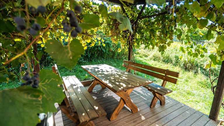 Die Weinfass-Suite für 4 Personen bietet eine Terrasse und ist eine gemütliche Unterkunft in Grub an der March. Die Einrichtung beinhaltet eine Küchenzeile und steht den Gästen zur Verfügung. Kostenloses WLAN ist in der gesamten Unterkunft verfügbar, ebenso ein Privatparkplatz vor Ort.