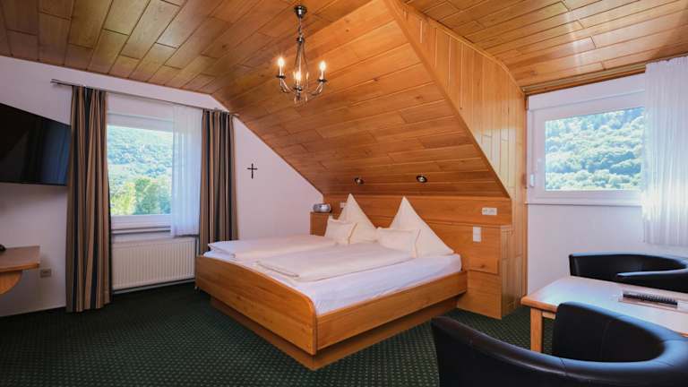 Das Hotel Ferienweingut-Liebfried liegt in Nehren, umgeben von den bezaubernden Weinbergen der Region. Die Mosel ist nur 100 m entfernt, was Ihnen die Möglichkeit bietet, die malerische Flusslandschaft zu erkunden. In der Umgebung gibt es zahlreiche Wander- und Radwege, die direkt am Hotel vorbeiführen. Die Städte Trier und Koblenz sind jeweils eine Autostunde entfernt und bieten weitere Sehenswürdigkeiten und Freizeitmöglichkeiten. Der Bahnhof Ediger-Eller ist 5 km vom Hotel entfernt und die Autobahn A1 erreichen Sie nach 35 km. Kostenlose Privatparkplätze stehen für Autos, Motorräder und Fahrräder zur Verfügung.