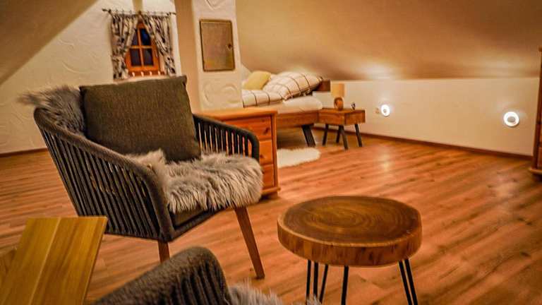 Die Ferienwohnung umfasst ein Wohnzimmer, einen Essbereich, ein Schlafzimmer und ein Badezimmer mit Dusche. Zur Ausstattung gehören Handtücher und Bettwäsche. Es ist auch eine Spielekonsole vorhanden.