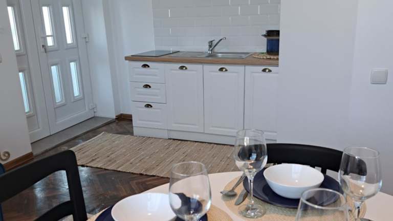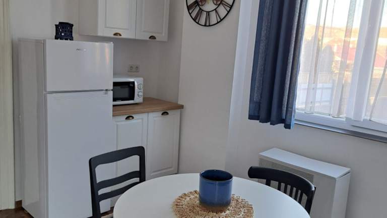 Die Ferienwohnung verfügt über ein Schlafzimmer und ein Wohnzimmer. Die Küche ist vollständig ausgestattet mit Kühlschrank und Kaffeemaschine. Zudem gibt es ein Badezimmer mit Dusche und Haartrockner. Handtücher und Bettwäsche werden bereitgestellt, und die Unterkunft ist klimatisiert.