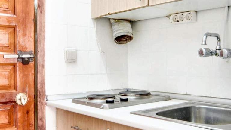 Die Unterkunft verfügt über eine komplette Küchenzeile mit Kühlschrank und Mikrowelle, die den Gästen die Möglichkeit bietet, eigene Mahlzeiten zuzubereiten. Keine weiteren Verpflegungsmöglichkeiten sind angegeben.