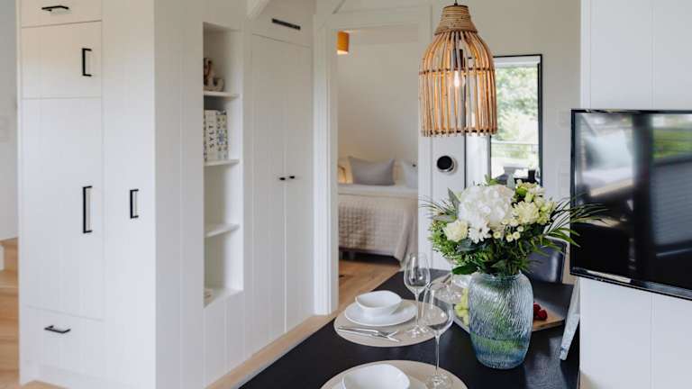 Die Ferienwohnung verfügt über zwei Schlafzimmer sowie zwei Badezimmer, die mit Duschen ausgestattet sind. Ein Flachbild-TV mit Kabelkanälen und eine gut ausgestattete Küche mit Kühlschrank und Geschirrspüler sind ebenfalls vorhanden. Bettwäsche und Handtücher sind nicht im Preis enthalten und müssen mitgebracht oder gegen Gebühr angemietet werden.