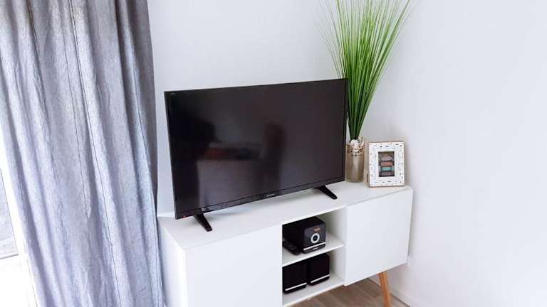 Die Ferienwohnung verfügt über ein Schlafzimmer, ein Badezimmer mit Dusche und Badewanne, eine Küche mit Kühlschrank, Geschirrspüler und Ofen sowie ein Wohnzimmer mit Sitz- und Essbereich. Zur Ausstattung zählen ein Flachbild-TV mit Satellitenkanälen, ein Blu-ray- und DVD-Player sowie ein CD-Player.