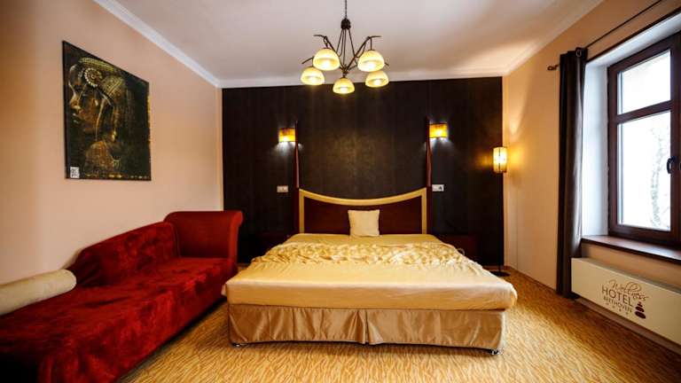 Das Wellness Hotel Beethoven im Zentrum von Chomutov bietet seinen Gästen eine gemütliche Unterkunft mit einem umfangreichen Wellnessangebot. Die Zimmer sind komfortabel eingerichtet und in warmen Farbtönen gehalten. Das Hotel verfügt über ein Wellnesscenter mit Whirlpool, Dampfbad und Infrarotsauna. Die Lage des Hotels ermöglicht es den Gästen, verschiedene Wassersportarten am nahegelegenen See Kamencove auszuüben und den Zoo von Chomutov in kurzer Zeit mit dem Auto zu erreichen.