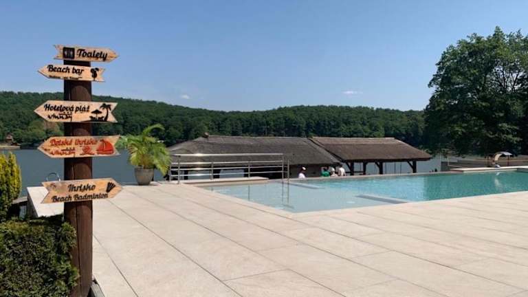 Das Wellness Hotel Vinnay bietet zahlreiche Freizeitmöglichkeiten. Sie können das Wellnesscenter nutzen, das einen Pool und verschiedene Wellnessanwendungen umfasst. In der Sommersaison steht Ihnen ein eigener Strand mit Sonnenliegen zur Verfügung. Für Kinder gibt es einen separaten Pool und eine Kinderecke. Darüber hinaus können Sie im Hotel Bowling spielen, Fahrräder mieten oder in der Umgebung spazieren gehen und die schöne Natur erkunden. Die Gegend eignet sich auch perfekt zum Schwimmen und Wandern. Sehenswürdigkeiten wie das Schloss Vinny und der Natursee Morské Oko sind ebenfalls leicht erreichbar.