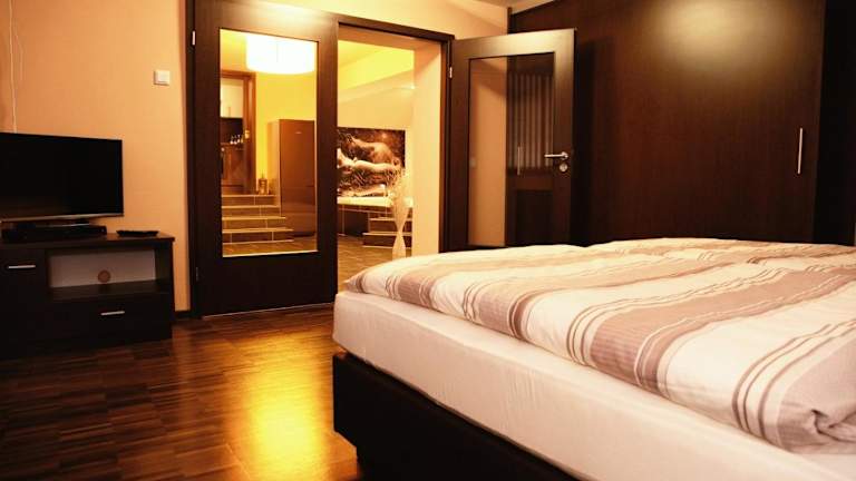 Wellness-Keller ist eine Ferienwohnung, die über einen Whirlpool verfügt und eine Vielzahl an Wellnesseinrichtungen bietet, darunter eine Sauna. Die Unterkunft bietet eine komfortable Atmosphäre.