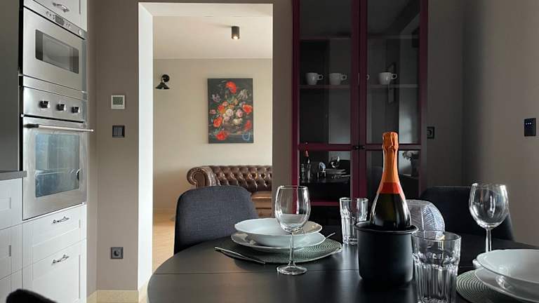Die Suite ist mit einer voll ausgestatteten Küche ausgestattet, die einen Kühlschrank und eine Kaffeemaschine umfasst. Es sind keine Informationen zu weiteren Verpflegungsmöglichkeiten vorhanden.