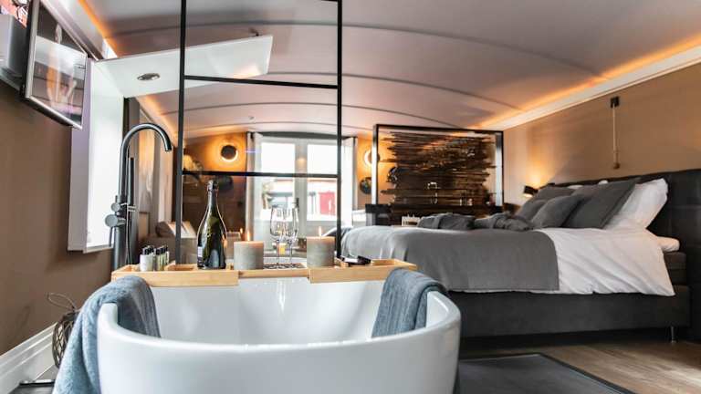 Das Wellnessboat De Michiel de Ruyter bietet ein komfortables und einzigartiges Übernachtungserlebnis auf dem Wasser. Das klimatisierte Boot verfügt über ein Schlafzimmer, ein Wohnzimmer und eine voll ausgestattete Küche mit Kühlschrank und Kaffeemaschine. Das Badezimmer ist mit einer Dusche und kostenlosen Pflegeprodukten ausgestattet. Handtücher und Bettwäsche werden gestellt, so dass Sie sich um nichts kümmern müssen.