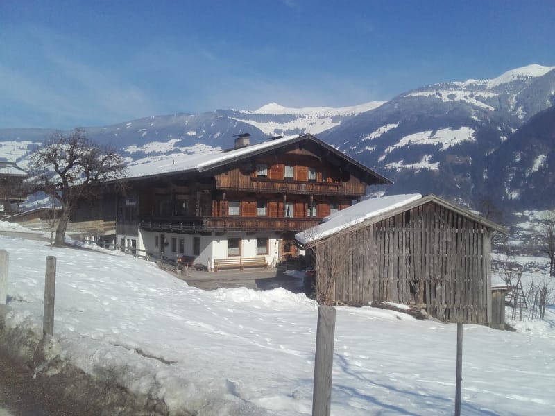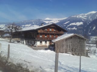 Umgeben von Wiesen, auf einer Anhöhe, ist unser Hof in relativ ruhiger Lage gelegen, aber trotzdem nicht weit vom Dorfkern Fügen entfernt.