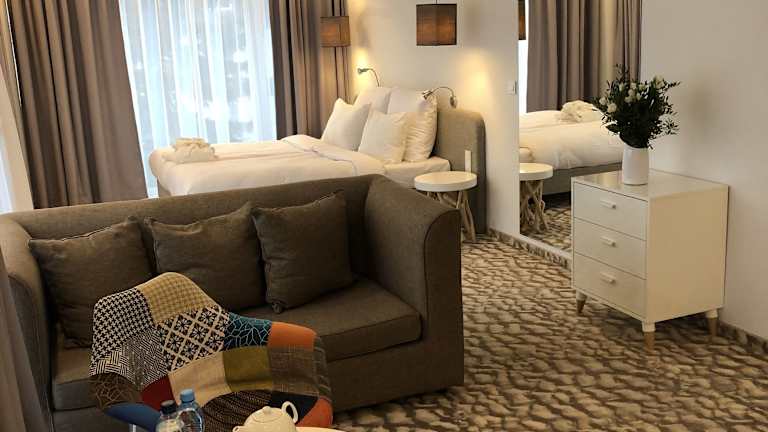 Das Hotel verfügt über einen Wellnessbereich mit einem Innenpool, Saunen und einem Whirlpool. Hier können Sie sich entspannen und die Seele baumeln lassen. Das Hotel bietet auch verschiedene Wellness- und Schönheitsanwendungen wie Massagen und Gesichtsbehandlungen an. Für die sportlich Aktiven gibt es einen Fitnessraum.