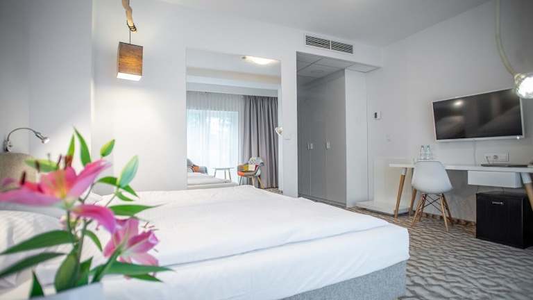 Das Hotel West Baltic Resort Wellness & Spa in Swinoujscie bietet seinen Gästen einen erholsamen und entspannten Aufenthalt. Hier können Sie die Seele baumeln lassen und die Annehmlichkeiten des großen Wellnessbereichs genießen. Das Hotel liegt in unmittelbarer Nähe zur Promenade und zum langen feinsandigen Strand, ideal für lange Spaziergänge und erholsame Tage am Meer. In der Umgebung finden Sie auch eine Vielzahl von Restaurants, die zum Verweilen und Genießen einladen. Das Hotel ist der perfekte Ausgangspunkt, um die zauberhafte Landschaft der Insel zu erkunden und historische Orte zu besichtigen.