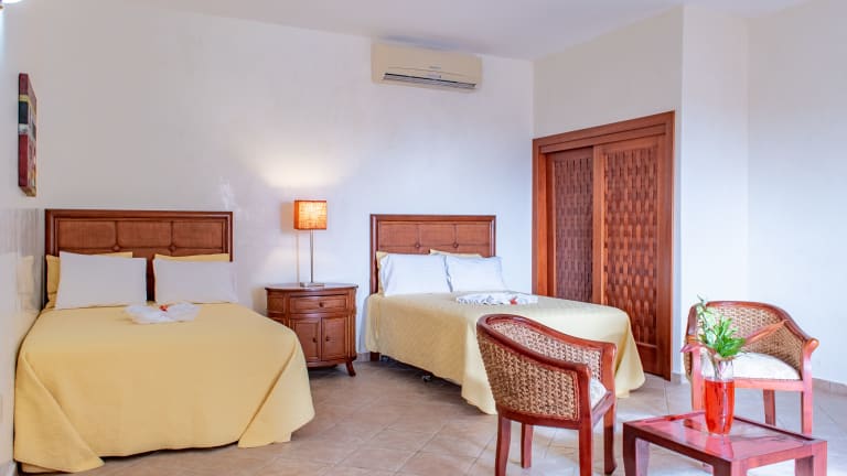 Die Zimmer sind klimatisiert und mit einem TV ausgestattet. Die Badezimmer sind mit Duschen versehen, während einige Zimmer Ausblicke auf den Poolbereich oder das Meer bieten.
