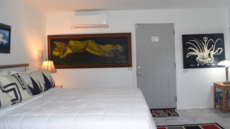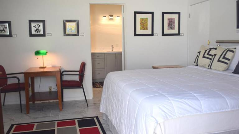 Die klimatisierten Unterkünfte im West Racquet Club Art Room bieten Ihnen eine angenehme Atmosphäre und sind mit Annehmlichkeiten ausgestattet, die Ihren Aufenthalt komfortabel machen. Jede Unterkunft verfügt über einen Flachbild-Kabel-TV, auf dem Sie Ihre Lieblingssendungen und Filme genießen können. Darüber hinaus gibt es eine Terrasse, auf der Sie sich entspannen und die Sonne Kaliforniens genießen können.