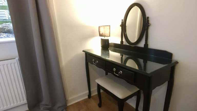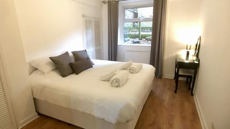 Die Ferienwohnung besteht aus zwei Schlafzimmern, einem Wohnzimmer und einer voll ausgestatteten Küche, die einen Kühlschrank und einen Wasserkocher umfasst. Zudem sind ein Badezimmer mit Dusche und Haartrockner vorhanden. Handtücher und Bettwäsche werden gestellt.