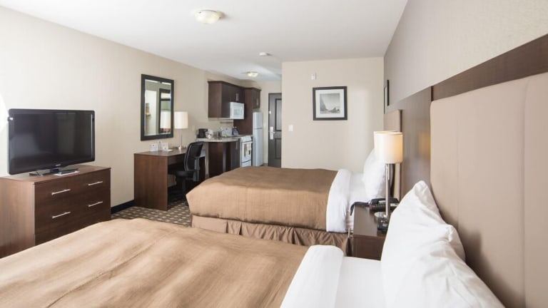 Die Zimmer im Western Star Inn & Suites Esterhazy sind komfortabel und modern eingerichtet. Jedes Zimmer verfügt über einen 40-Zoll-Flachbild-Kabel-TV, eine Mikrowelle und einen Kühlschrank. Ein Sitzbereich und eine Kaffeemaschine sind ebenfalls vorhanden. Einige Zimmer bieten sogar eine voll ausgestattete Küche, so dass Sie Ihre eigenen Mahlzeiten zubereiten können.