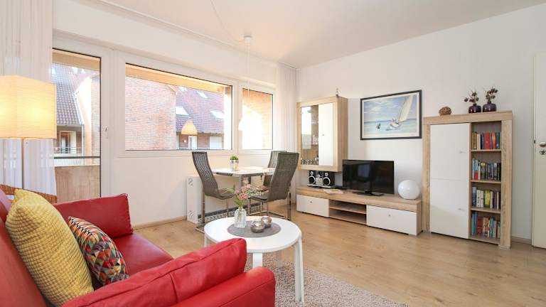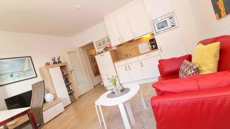 Die Ferienwohnung verfügt über ein Schlafzimmer und eine Küchenzeile, die mit einem Kühlschrank und einem Geschirrspüler ausgestattet ist. Es gibt ein Badezimmer mit Dusche, Haartrockner und Waschmaschine. Zur Unterhaltung stehen ein TV und ein CD-Player bereit. Haustiere sind auf Anfrage erlaubt.