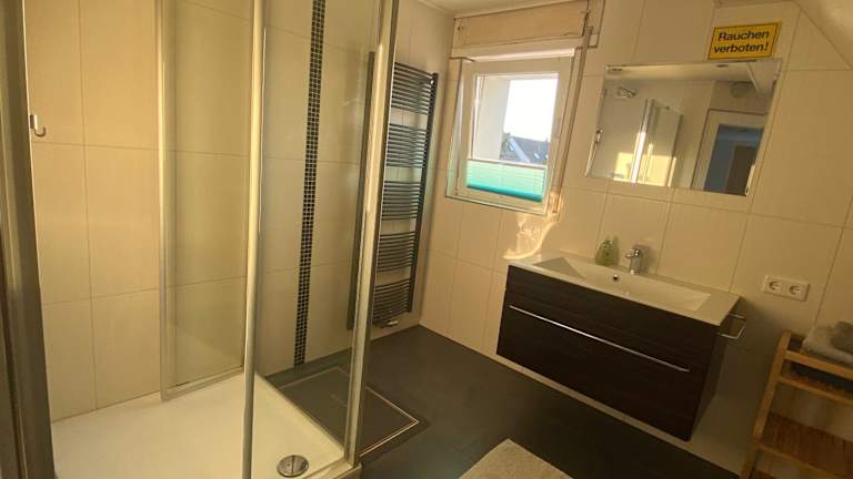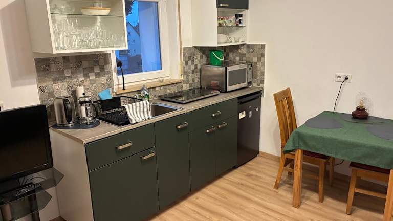 Die Ferienwohnung umfasst ein Schlafzimmer, ein Wohnzimmer sowie eine voll ausgestattete Küchenzeile, die mit einem Kühlschrank und einer Kaffeemaschine ausgestattet ist. Das Badezimmer verfügt über eine Dusche und einen Haartrockner. Handtücher und Bettwäsche werden zur Verfügung gestellt.