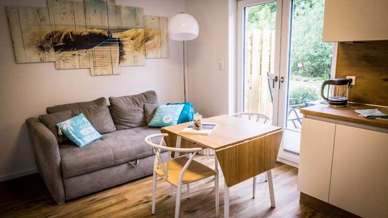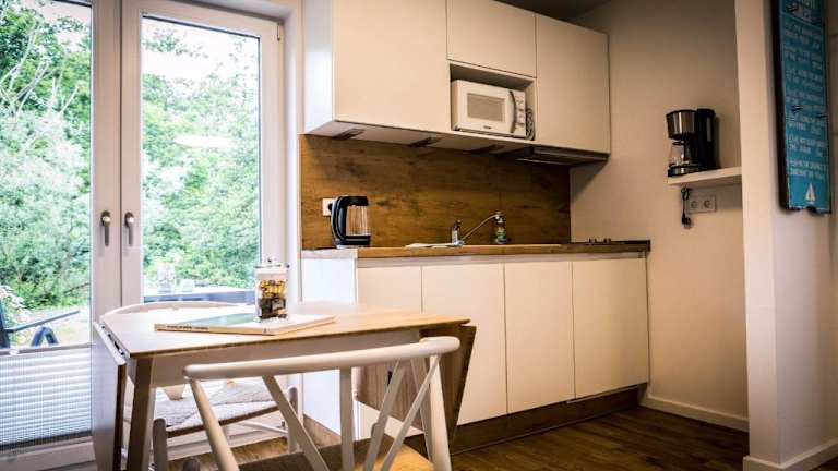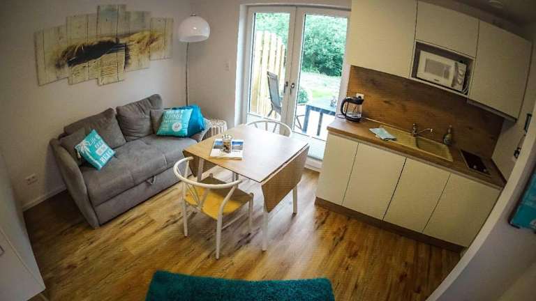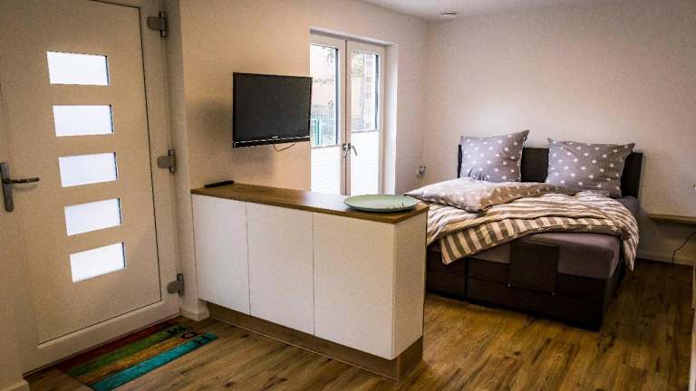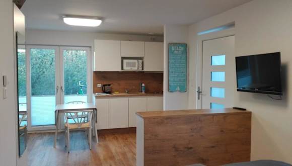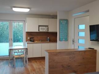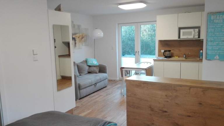 Die Ferienwohnung bietet ein Schlafzimmer, ein Wohnzimmer und eine gut ausgestattete Küche, die mit einem Kühlschrank und einem Geschirrspüler versehen ist. Zudem verfügt sie über ein Badezimmer mit Dusche, eine Terrasse und Gartenblick. Handtücher und Bettwäsche werden bereitgestellt.