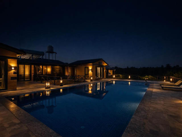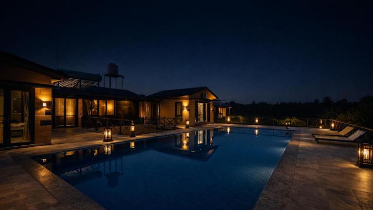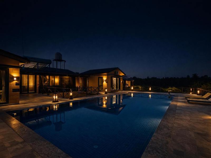 Das Whispering Woods Chalet in Sasan Gir ist der perfekte Ort, um die Schönheit der Natur zu erleben und gleichzeitig alle Annehmlichkeiten eines komfortablen Aufenthalts zu genießen. Mit einem atemberaubenden Bergblick, einem erfrischenden Außenpool und einem gepflegten Garten können Sie hier eine erholsame Zeit verbringen. Die Unterkünfte sind klimatisiert und mit modernen Annehmlichkeiten ausgestattet, darunter ein Flachbild-TV. Einige Unterkünfte bieten auch einen gemütlichen Sitzbereich und einen Balkon. Entdecken Sie die Umgebung und besuchen Sie den Somnath-Tempel, der nur 43 km entfernt liegt. Der Flughafen Chod ist ebenfalls gut erreichbar und befindet sich etwa 53 km vom Chalet entfernt.