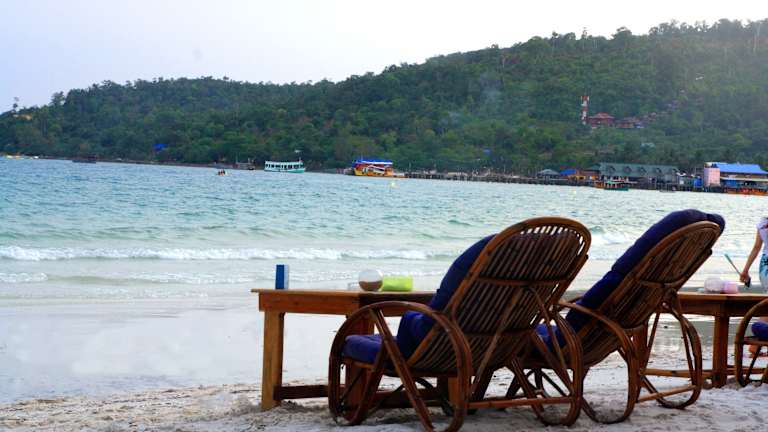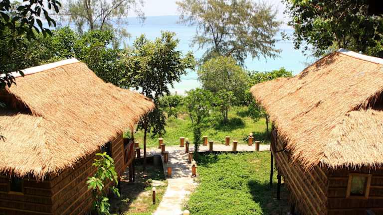 Entdecken Sie die White Beach Bungalows auf der paradiesischen Insel Koh Rong und erleben Sie einen unvergesslichen Aufenthalt in einer charmanten Unterkunft im Landhausstil. Genießen Sie den atemberaubenden Meerblick von Ihrem Balkon aus und entspannen Sie im eigenen Garten. Das Restaurant und die Bar sorgen für kulinarische Genüsse. Der nahegelegene weiße Sandstrand lädt zum Entspannen ein, während das Dorf, ein Pier und ein Tauchzentrum in Gehweite liegen. Erleben Sie einen abenteuerlichen Anreiseweg per Boot von der Bootsstation Sihanoukville.
