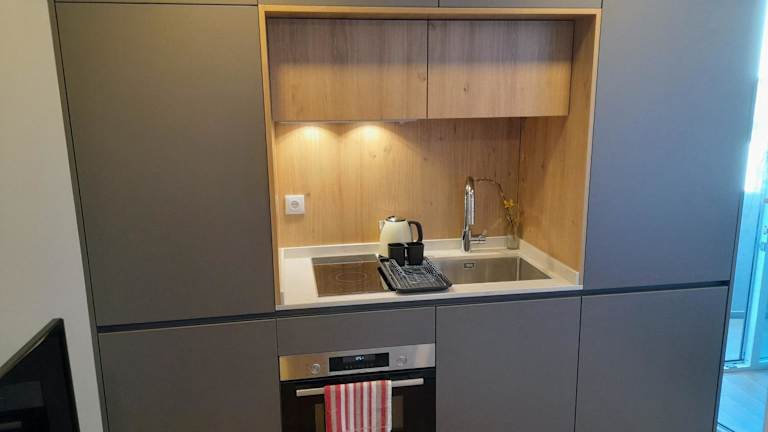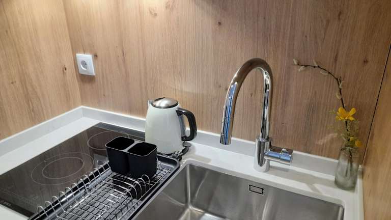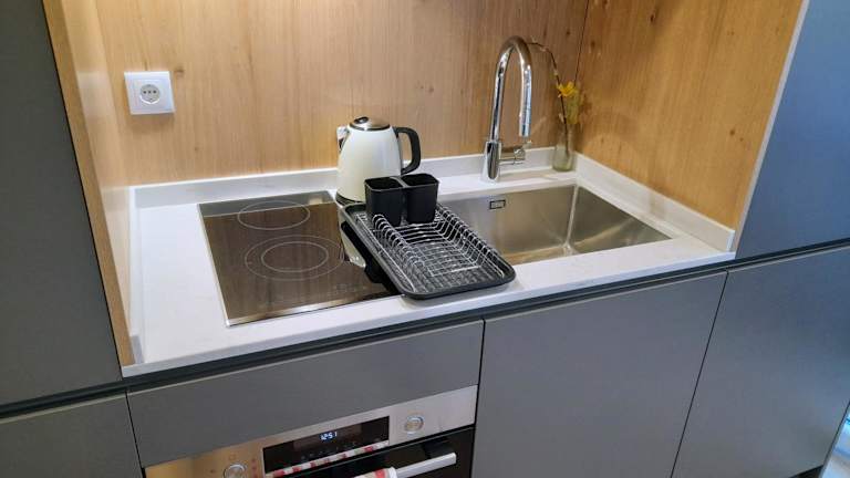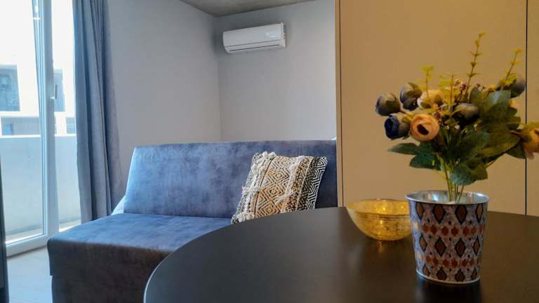 Das White Design Apartment bietet ein gemütliches Schlafzimmer mit allem Komfort, den Sie für eine erholsame Nacht benötigen. Das klimatisierte Apartment verfügt über ein geräumiges Wohnzimmer, in dem Sie sich entspannen und den Stadtblick genießen können. Die voll ausgestattete Küche bietet Ihnen die Möglichkeit, Ihre eigenen Mahlzeiten zuzubereiten, und ist mit einem Kühlschrank und einem Wasserkocher ausgestattet. Im modernen Badezimmer finden Sie eine Dusche und kostenlose Pflegeprodukte. Handtücher und Bettwäsche werden gestellt, sodass Sie sich um nichts kümmern müssen.