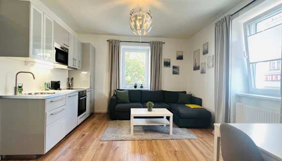 White Inn - Kuschelige Ferienwohnung ist eine Ferienwohnung in einem Gebäude aus dem Jahr 1800 und bietet Übernachtungsmöglichkeiten mit Stadtblick. Zur Ausstattung gehören kostenloses WLAN und ein kostenloser Privatparkplatz.