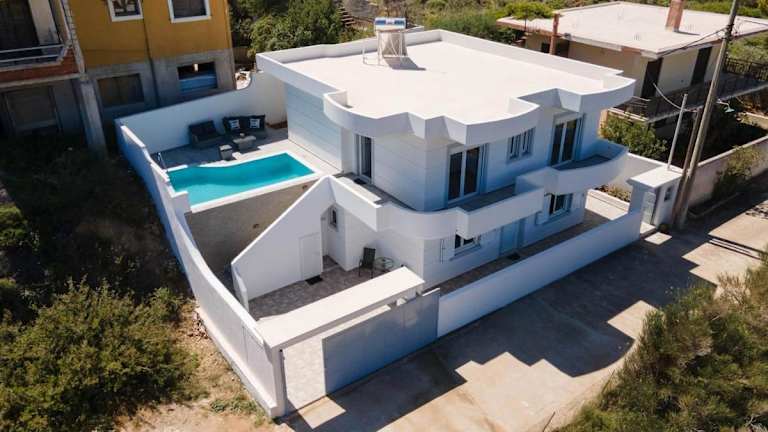 Die Unterkunft white Paradise - luxury Villa bietet klimatisierte Übernachtungsmöglichkeiten mit einem eigenen Pool. Die Villa bietet Meerblick und ist umgeben von einem Garten. Kostenloses WLAN ist ebenfalls verfügbar.