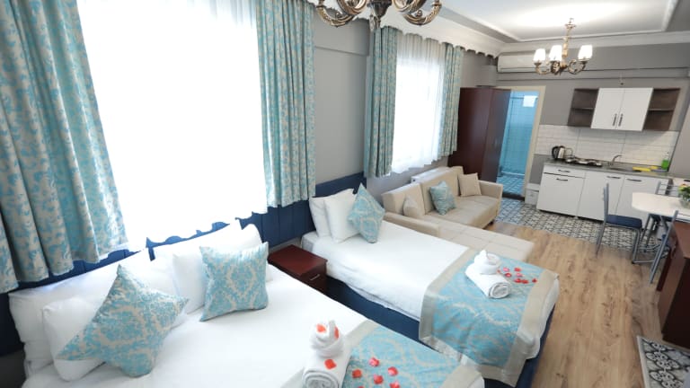 Das White Pearl Apart bietet seinen Gästen eine komfortable Unterkunft im Herzen von Istanbul. Mit seiner zentralen Lage ist es der perfekte Ausgangspunkt, um die Sehenswürdigkeiten der Stadt zu erkunden. Die klimatisierten Zimmer sind modern eingerichtet und verfügen über eine voll ausgestattete Küchenzeile. Das kostenfreie WLAN sorgt dafür, dass Sie immer mit der Welt in Verbindung bleiben können.