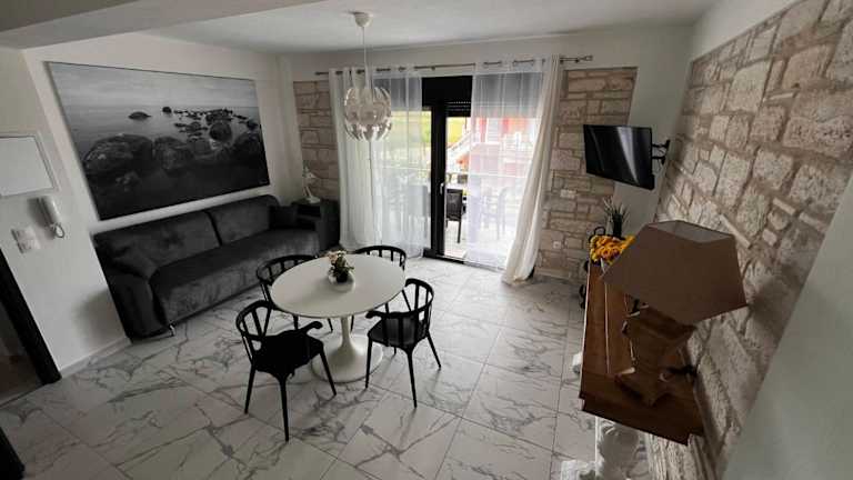 Das White Pearl Apartment bietet moderne Übernachtungsmöglichkeiten mit kostenlosem WLAN und Klimaanlage. Die Unterkunft wird von einem privaten Gastgeber geführt und ist Nichtraucher. Es gibt eine Terrasse mit Meerblick, Gartenbereiche und zusätzliche Dienstleistungen wie Fahrradverleih und Autovermietung. Check-in ist ab 15:00 bis 21:00 Uhr möglich, während der Check-out zwischen 07:00 und 10:00 Uhr erfolgt.