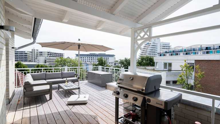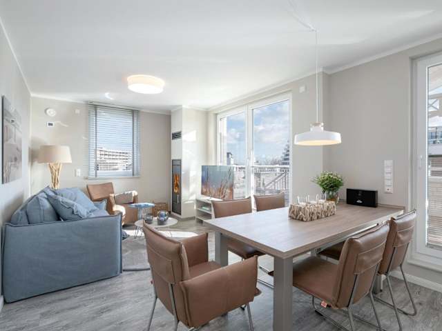Das Wicheldorfstraße 48a Penthouse am Kurpark bietet Übernachtungsmöglichkeiten mit Zugang zu einer Sauna. Es handelt sich um eine Ferienwohnung mit Balkon, zwei Schlafzimmern, einem Wohnzimmer und einer gut ausgestatteten Küche.