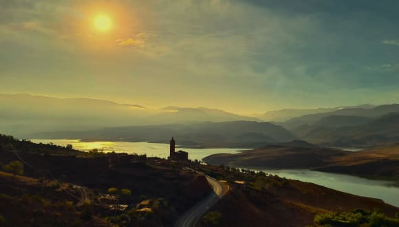 Das Hotel liegt in einem Naturpark auf einem Hügel im Ort Bin El Ouidane, an der Nordseite des Hohen Atlas in Marokko. Der nahegelegene Staudamm befindet sich ca. 4 km entfernt und die Großstadt Beni Mellal liegt etwa 1 Autostunde entfernt. Die ruhige Lage am Hang, umgeben von Natur und am See, bietet eine entspannende Atmosphäre.