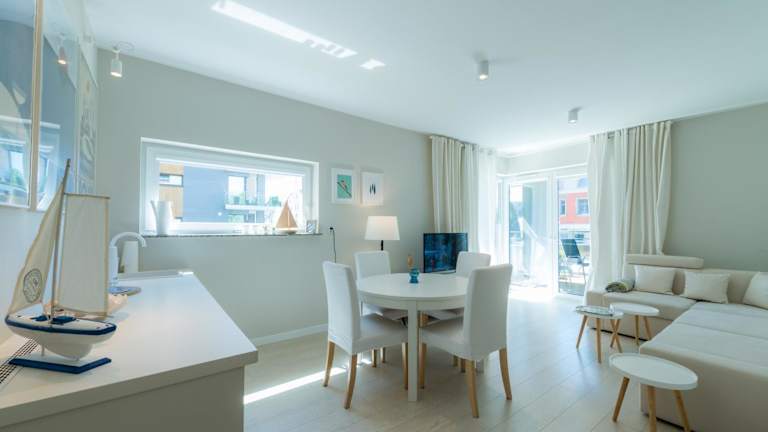 Die Marina Apartaments przy Porcie bieten ein komfortables und stilvolles Apartment mit Seeblick. Das Apartment verfügt über zwei Schlafzimmer, ein Wohnzimmer und eine voll ausgestattete Küchenzeile mit Kühlschrank und Backofen. Das moderne Badezimmer ist mit einer Dusche ausgestattet. Handtücher und Bettwäsche werden gestellt, sodass Sie sich um nichts kümmern müssen. Genießen Sie den Komfort eines eigenen Balkons und kostenfreien WLAN-Zugangs.