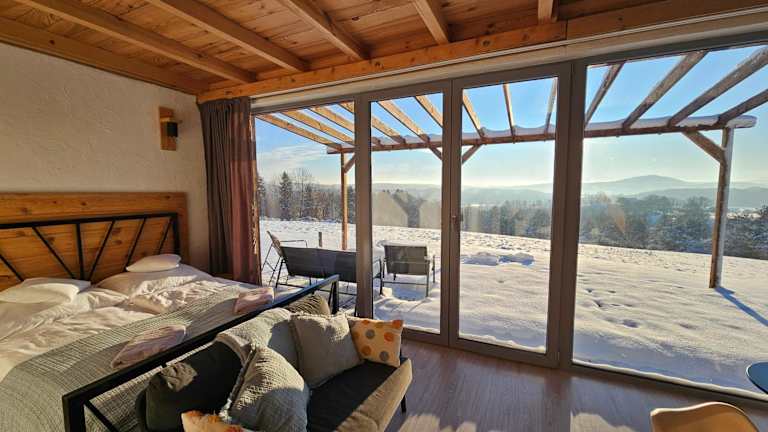 Das Widokowe Stodoły Bieszczady in Lesko ist eine ideale Unterkunft in der Region Podkarpackie für alle, die Ruhe und Natur suchen. Hier können Sie in gemütlichen Ferienhäusern mit kostenfreien Privatparkplätzen übernachten und den herrlichen Blick auf die Stadt und die Berge genießen. Die Unterkünfte sind modern eingerichtet und verfügen über eine voll ausgestattete Küche sowie ein eigenes Bad. Nutzen Sie die Gelegenheit zum Grillen oder erkunden Sie die Umgebung beim Skifahren oder Radfahren.