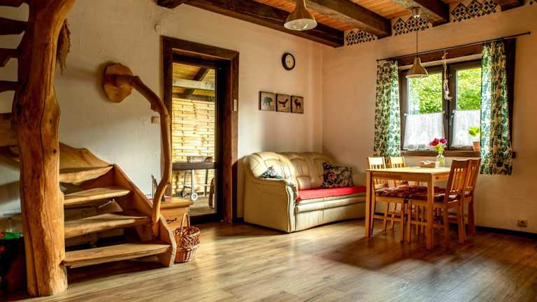Wiejski Dworek bietet eine komfortable Unterkunft mit verschiedenen Annehmlichkeiten wie kostenlosem WLAN, einem Garten sowie einem Spielplatz für Kinder. Eine Terrasse mit Bergblick steht den Gästen zur Verfügung. Kostenlose Privatparkplätze sind ebenfalls vorhanden.